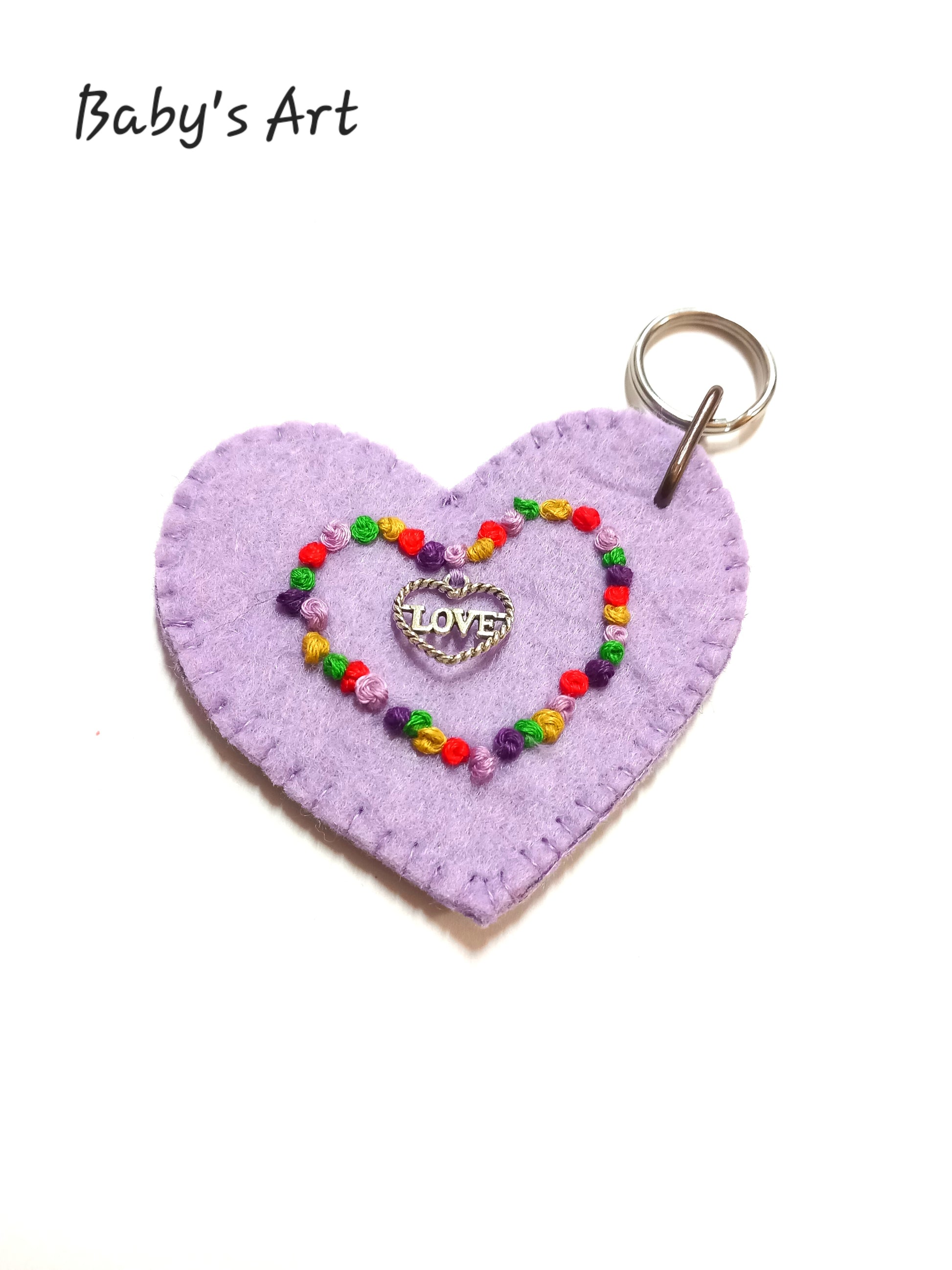 Portachiavi artigianale di feltro ricamato a mano con ciondolo in acciaio.