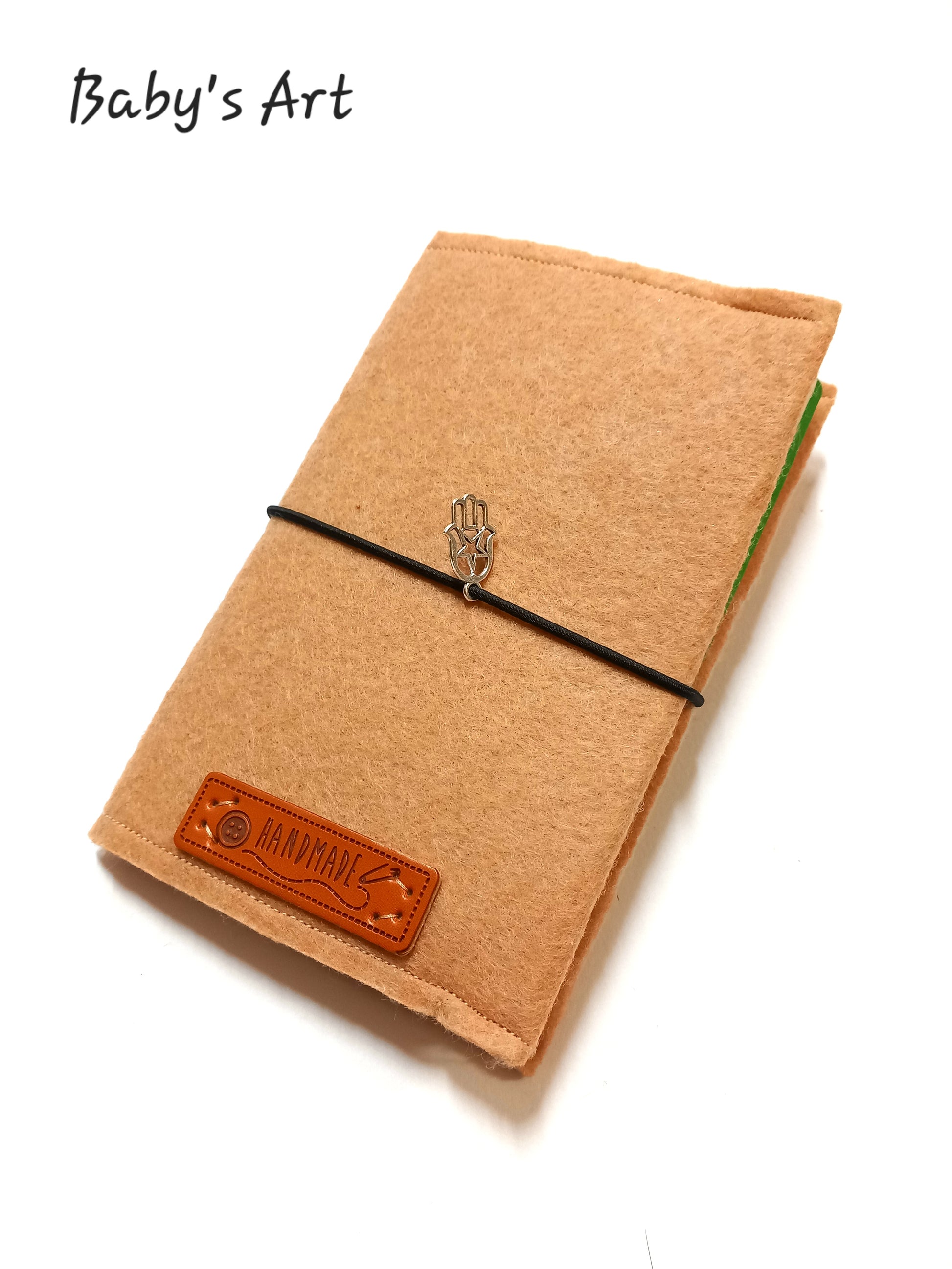 Taccuini artigianali con copertina in feltro e ciondolo in acciaio.